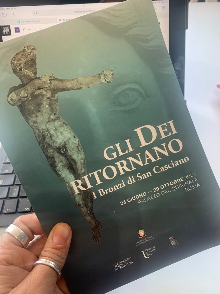 Badate bene, ognuno di questi reperti è un dono alla divinità, offerto nella speranza di ottenere guarigione oppure a guarigione ottenuta. Nel contesto di Roma siamo più abituati agli ex voto in terracotta, e recentemente ve ne ho raccontati alcuni dalla mostra “Roma della Repubblica” (ve ne ho parlato qui), ma la scoperta sconvolgente a San Casciano dei bagni sta nel fatto che, in una vasca rituale, riempita dalle stesse acque curative che fin dall’età medicea hanno accolto bagnanti in cerca di ristoro, sono state gettate decine di statue a figura intera di bronzo. E quanto più le statue pesano, tanto più chi le ha donate intendeva omaggiare gli dei delle acque sacre.