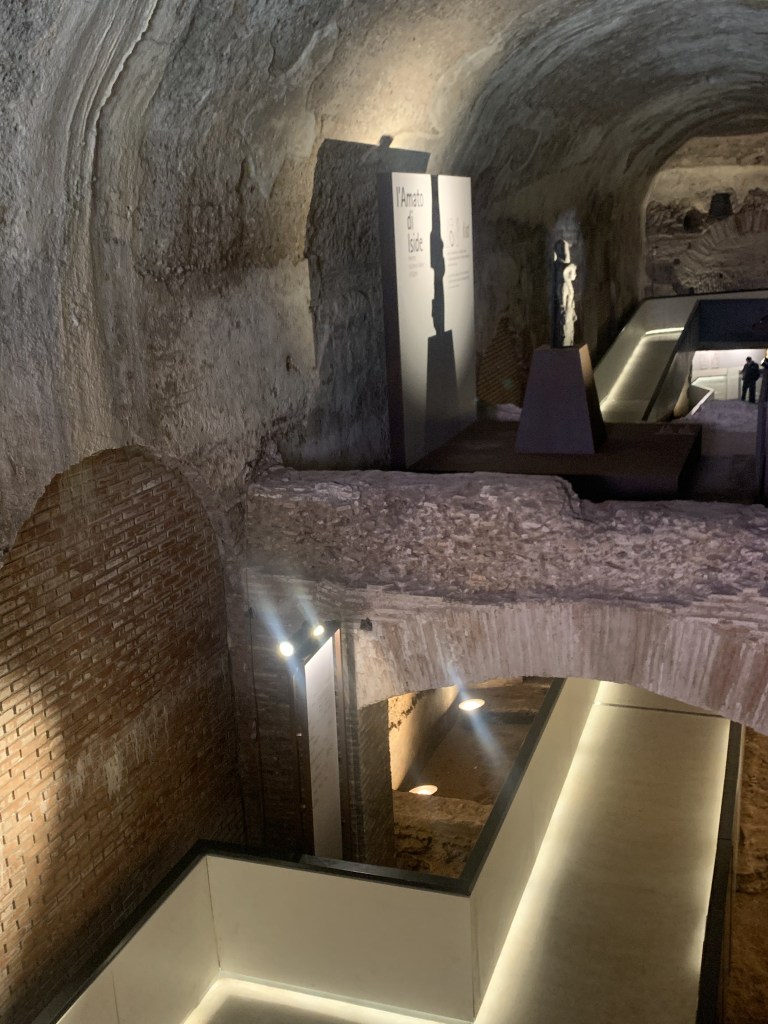 Più andavo avanti nel percorso e più mi domandavo perché non avessero scelto Augusto come soggetto della mostra, perché c’erano tutti i presupposti per raccontare delle tracce residue dell’Egitto a Roma e soprattutto sul Palatino! Ah beh certo, Augusto non ha fatto la Domus Aurea.