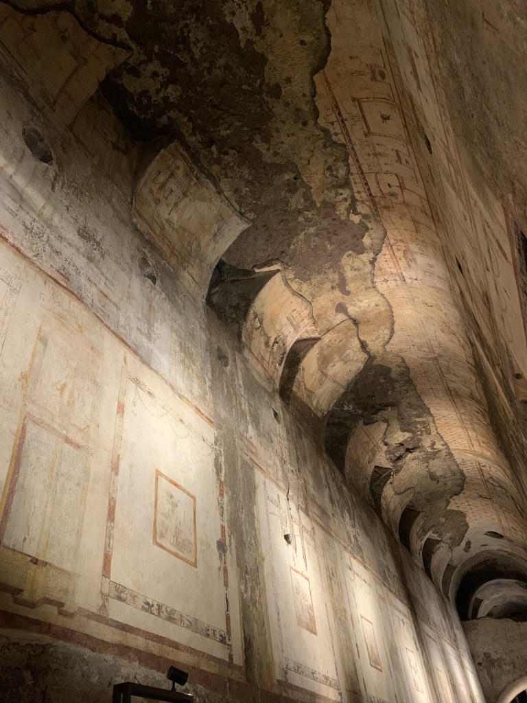L’ho visitata per voi, ma anche per avere una scusa per tornarci. Come vi ho raccontato su Instagram (proprio qui) , ho lavorato per il servizio didattico ufficiale in Domus Aurea per molti anni e in quel luogo ci ho lasciato il cuore, perché tra quei muri, oggi umidi e bui, ho capito quale sia la potenza rievocativa dell’architettura antica completa dei soffitti, e di quanto sia stata fortunata a poter studiare archeologia dell’architettura a Roma, il luogo dove meglio di altri si impara ad allenare gli occhi e la mente al concetto di stratificazione.