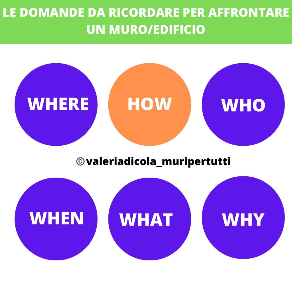 1H sta per “how”, l’unica domanda che non comincia per W, ma è fondamentale per inquadrare molti aspetti tecnologici e costruttivi dei muri, edifici ecc.