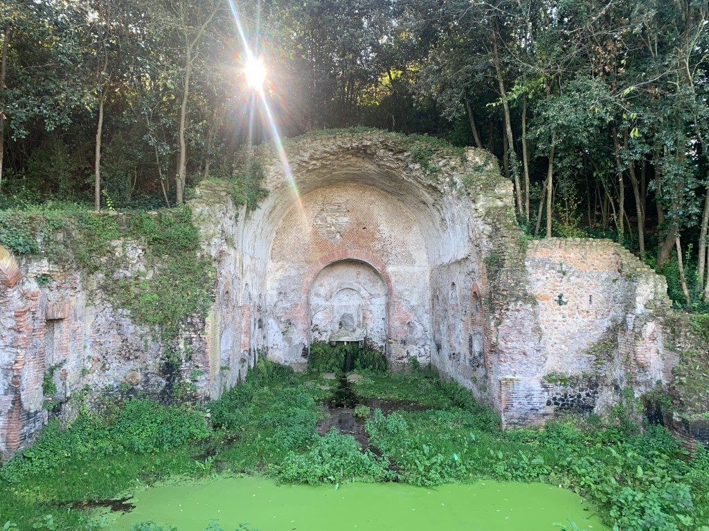 A proposito di Oversize, il primo elemento di dimensioni ragguardevoli è il mausoleo, del quale, tuttavia, possiamo leggere la forma in pianta ma il corpo è stato in gran parte distrutto e poi ricostruito nelle forme di un casale rustico nel XVIII secolo. Immaginiamo sia stato costruito per contenere le ceneri del figlioletto Romolo, morto nel 309 (dunque l’edificio avrebbe una cronologia ristretta agli anni 306-309!), ma doveva senz’altro servire tutta la famiglia.