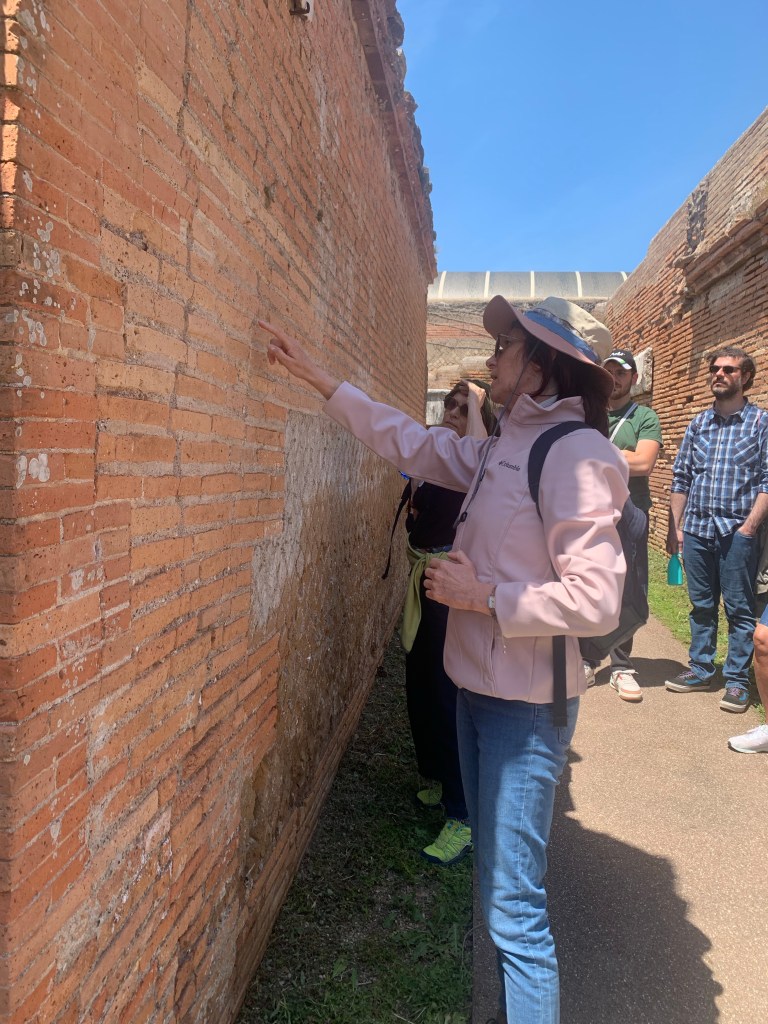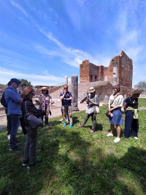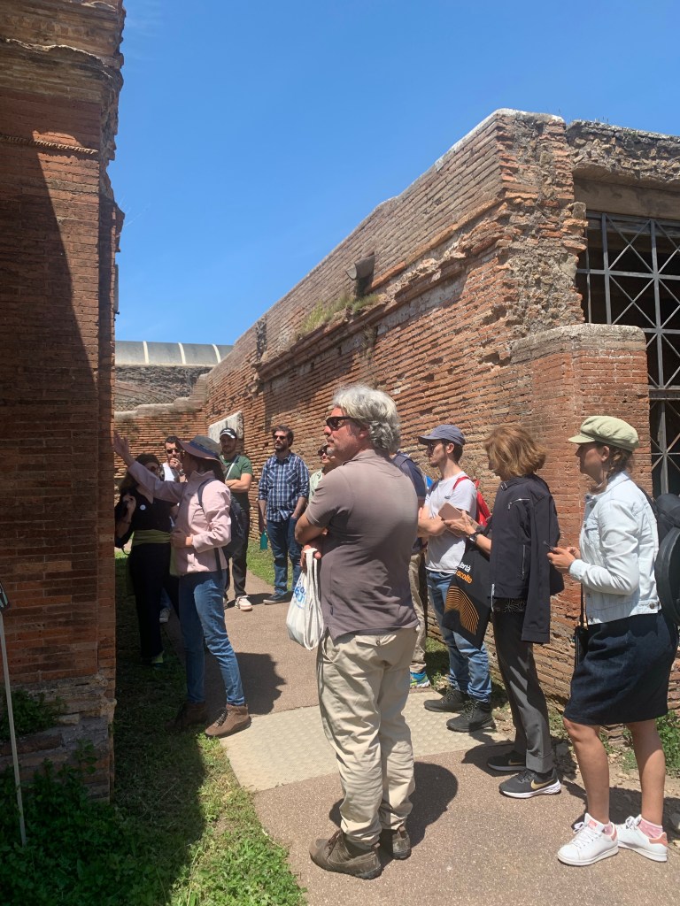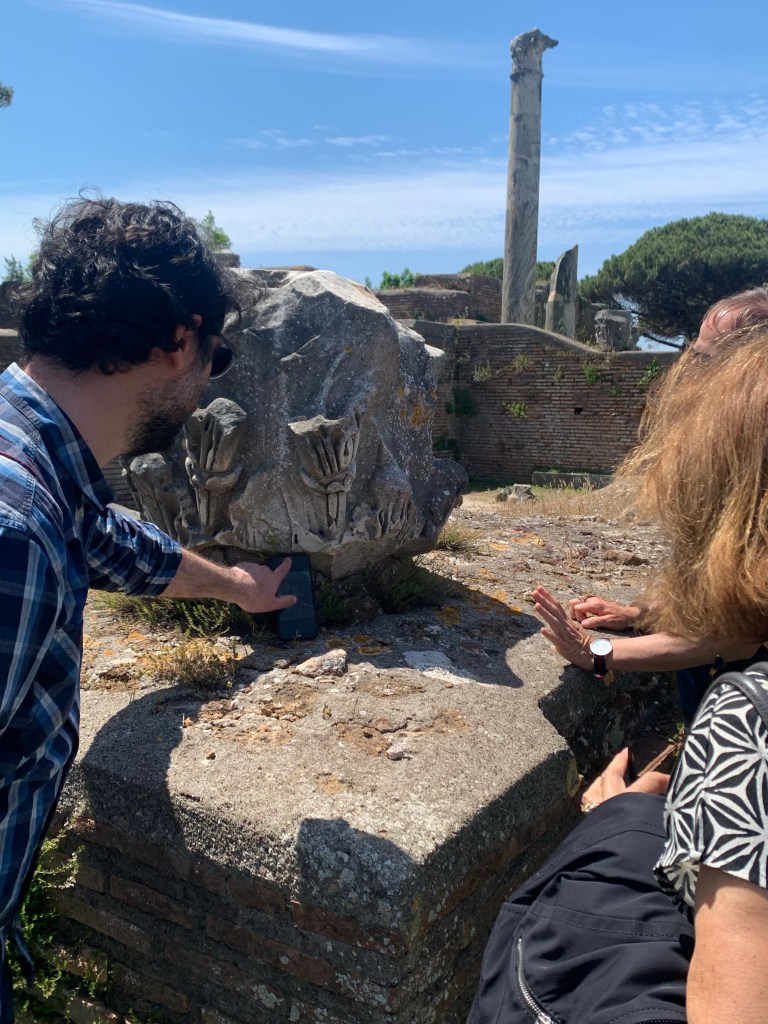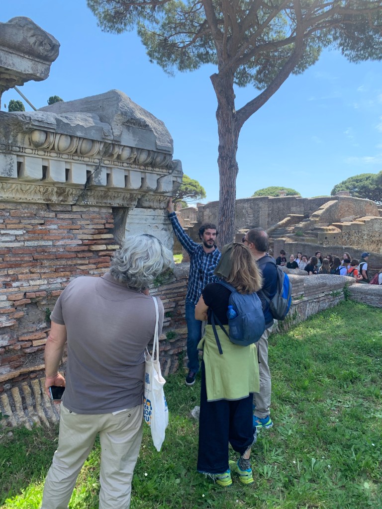Questo progetto, che con l’archeologo Alessandro Mortera abbiamo voluto chiamare “Muri e Marmi”, ci ha portati finora sul Celio e al Museo della Forma Urbis, poi ad Ostia antica una prima volta, per esplorare il settore che va dalla necropoli alle terme del Foro, e una seconda volta ieri, martedì 14 maggio 2024, per esplorare l’area del Foro e i suoi dintorni.