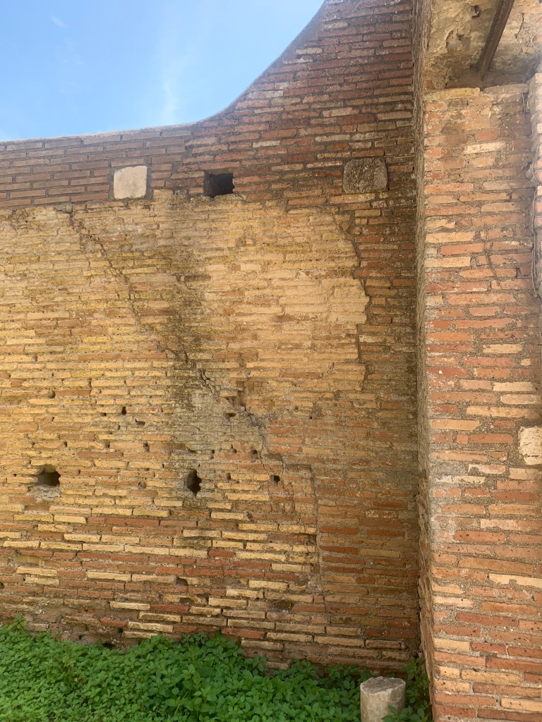 L’altro luogo dove abbiamo potuto esaminare una lesione da attività sismica è presso gli Horrea Epagathiana, un edificio la cui funzione è dibattuta: classico magazzino oppure sede di aste commerciali, secondo l’affascinante lettura dell’archeologa Janet DeLaine?