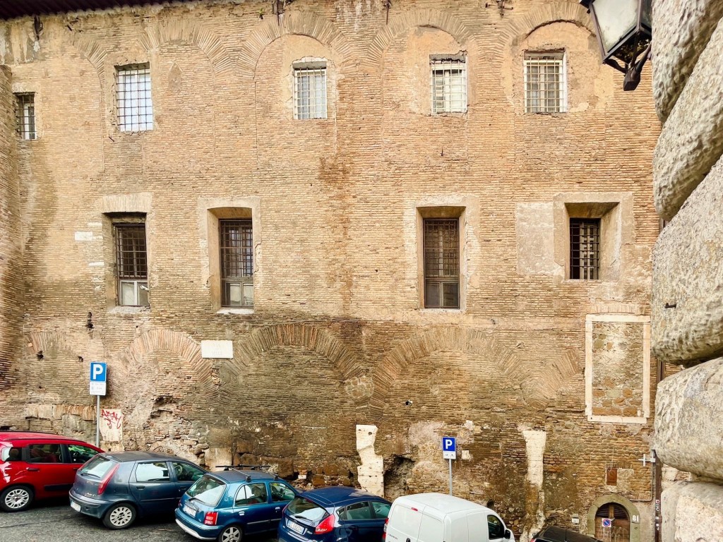 Noterete subito degli ampi archi in laterizi, qualche pilastro in travertino allineato in basso, e sopra, una seconda fila di archi più piccoli.