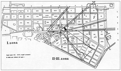 E proprio all’inizio di via in Selci, tra le torri medievali dei Capocci e dei Cantarelli (che ovviamente Marziale non poteva vedere), i topografi collocano la fontana di Orfeo, quella, appunto, descritta da Marziale. E questa fontana sarebbe da riconoscere nei tre cerchi affiancati rappresentati sulla Forma Urbis severiana: tre cerchi per tre bacini di acqua.