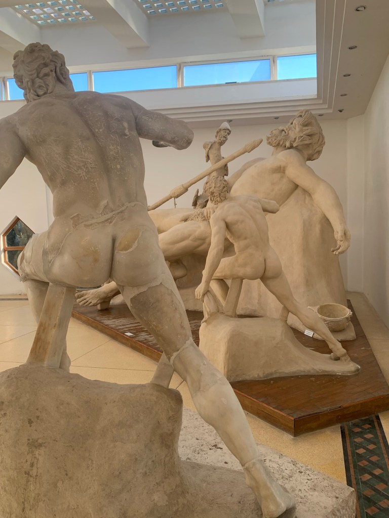 Ora, il mio suggerimento è di visitare prima il Museo, perché solo lì troverete una pianta decente dell’edificio e la spiegazione, seppur sommaria, degli ambienti e delle funzioni, nel tempo (i pannelli nel Parco sono obsoleti e crepati e si leggono male). E sempre in Museo potete guardare da vicino le favolose sculture legate al ciclo omerico.