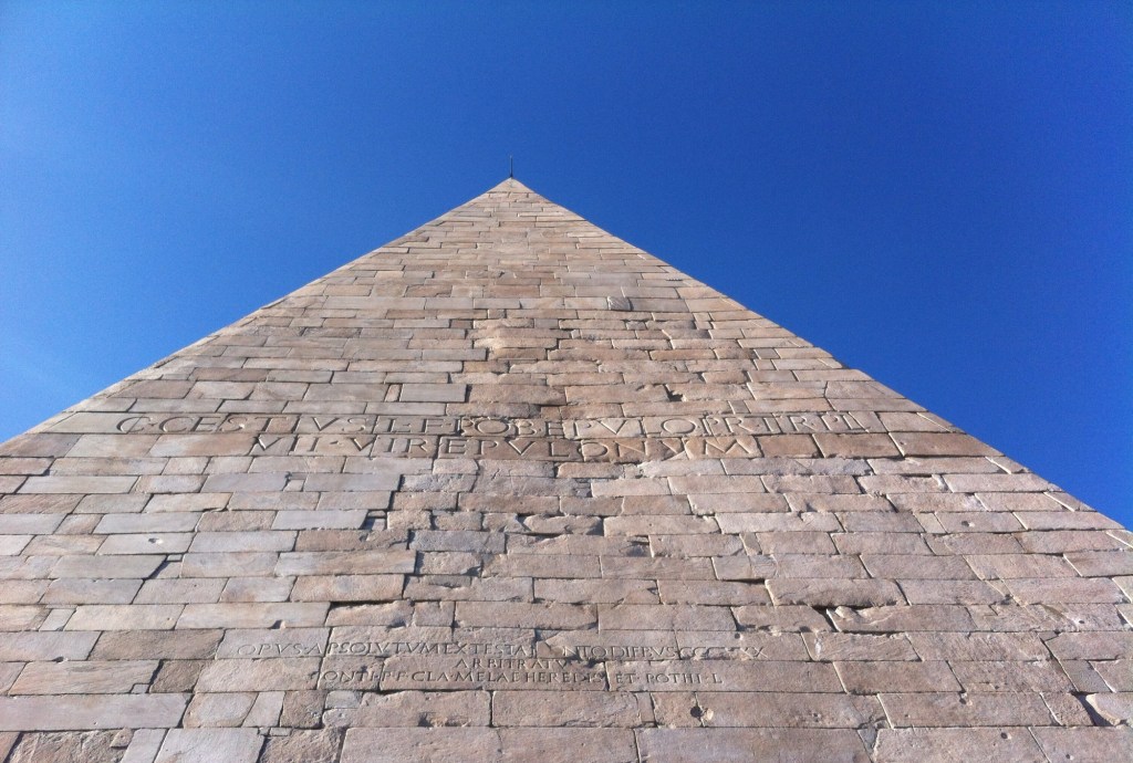 Siamo in età Augustea, anni finali del I secolo a.C. Un eccentrico riccone, di nome Caio Cestio, dell’ordine dei Septemviri Epulonum, ossia dell’ordine dei più alti funzionari responsabili dei banchetti sacri, vuole essere sepolto in una tomba a forma di piramide.