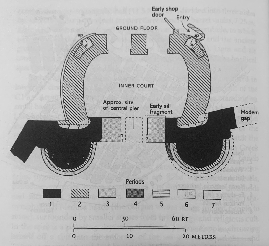 Tutto ciò per dirvi che durante quegli scavi si scoprì che porta Ostiense nasceva con due archi anche all’esterno e che solo in seguito (secondo Richmond durante il restauro di Onorio, 403 dC) le porte ad archi gemelli furono ridotte a un solo fornice.