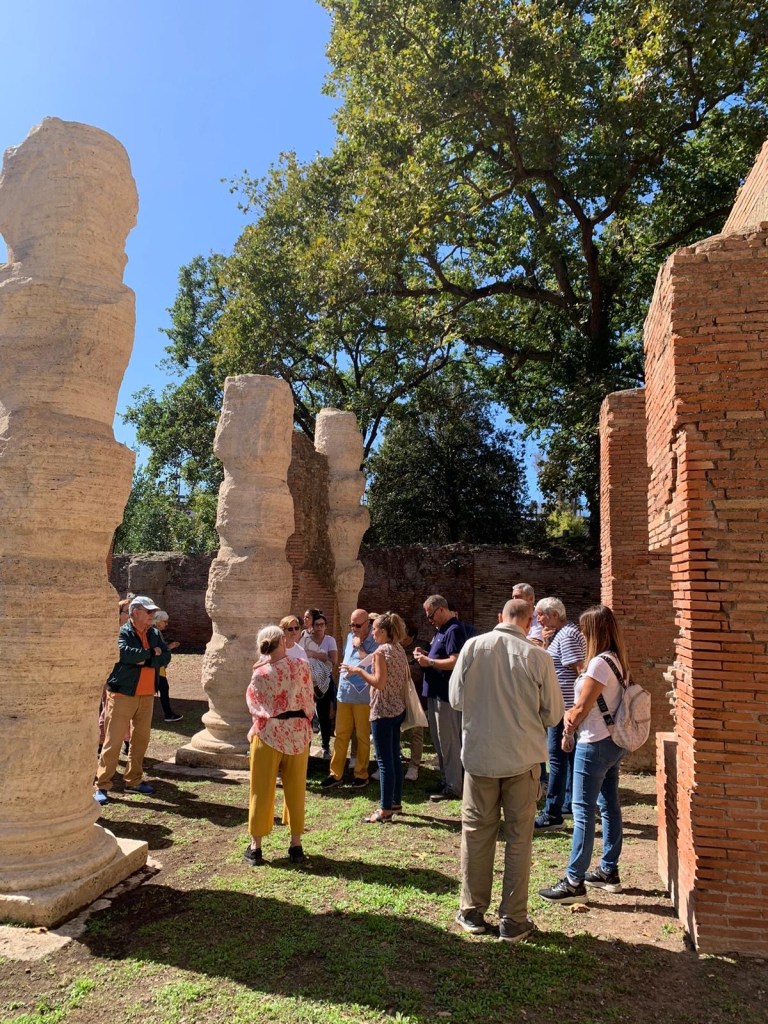 All’evento del 26 ottobre, con la comparsa di maglioncini e scarpe chiuse, abbiamo riproposto il giro classico, aggiungendo un altro luogo speciale, le terme della Lanterna, un edificio che racconta di una Portus tarda e ormai autonoma rispetto a Ostia, elevata a Civita da Costantino e quindi risorta, mentre la consorella Ostia lentamente moriva.