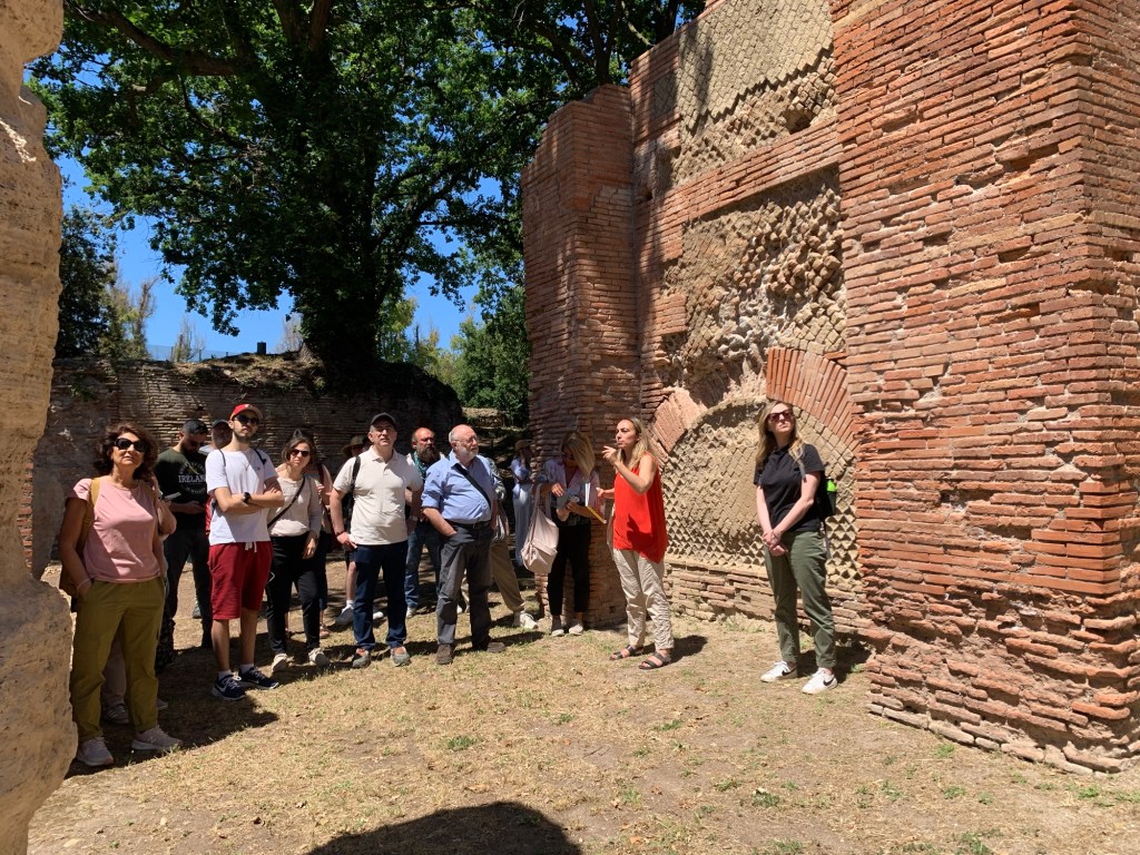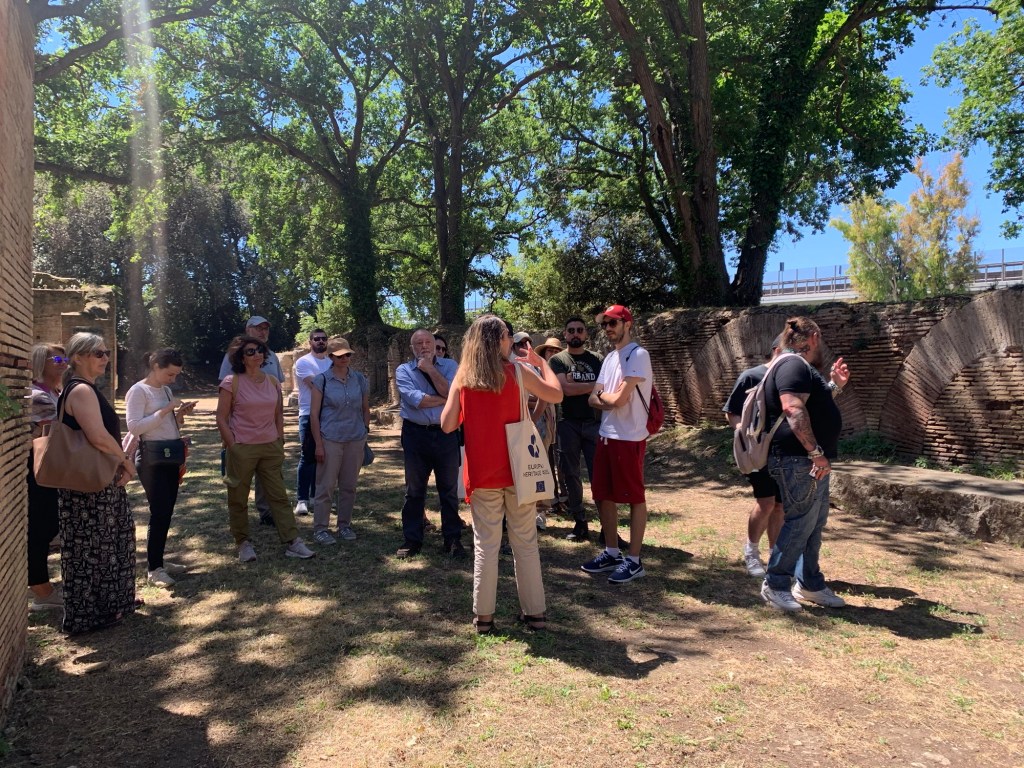 Con una foto di gruppo scattata scandendo la parola “PORTUS” si chiude questa prima esperienza di archeologia pubblica con il Parco Archeologico di Ostia antica.