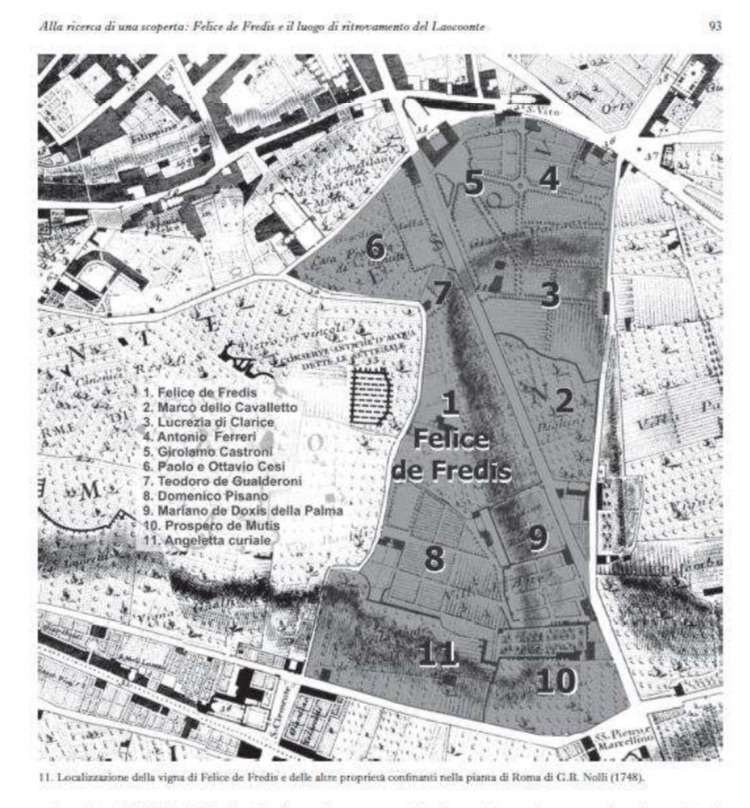 Risalendo al nome del proprietario della vigna, il signor Felice de Fredis, si è innescata una serie di fortunati ritrovamenti d’archivio per cui le studiose hanno potuto indagare meglio la storia del fortunatissimo vignaiolo, scoprendo, ad esempio, che papa Giulio II, per ricompensarlo della vendita della statua, cedette a lui e ai suoi eredi la gabella di Porta di San Giovanni.