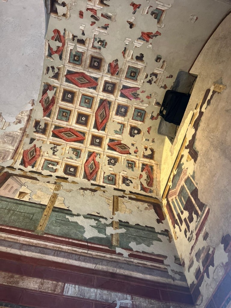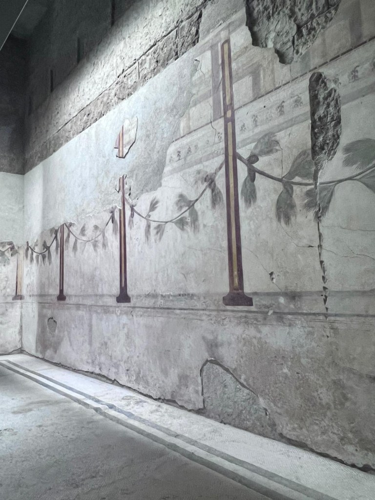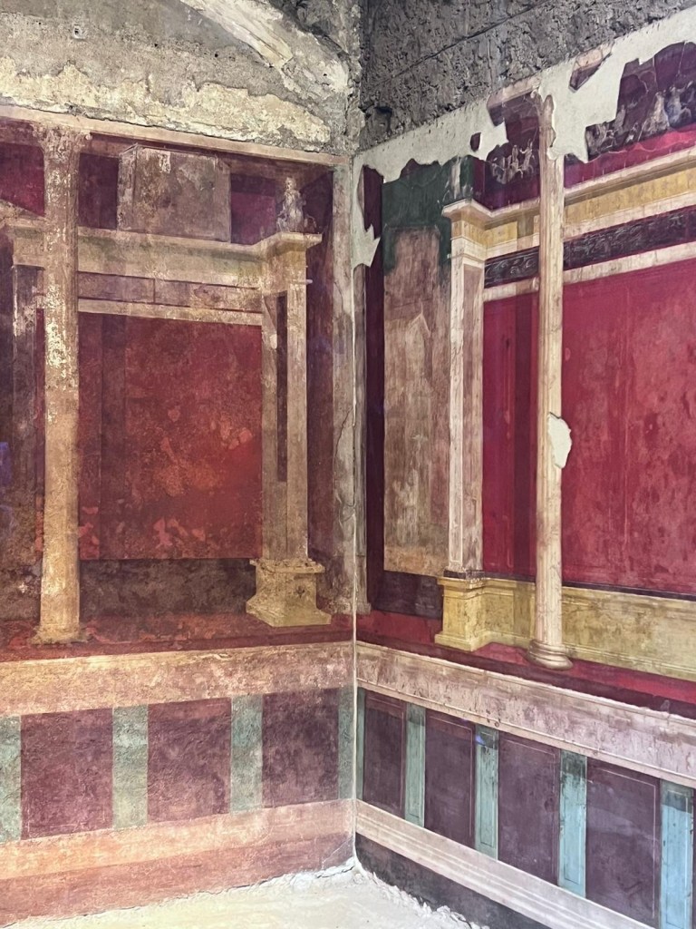 Lo stile, pure, ci aiuta a vedere le differenze con le pitture della casa rasa al suolo, che oggi visitiamo. Queste sono più morbide, più sovrabbondanti di dettagli, più “mature”.