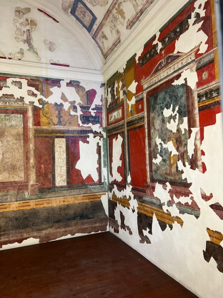 L’aspetto rilevante di queste pitture sontuose è che costituiscono l’atto finale della storia immobiliare. Sarebbero come la mano di vernice per “rinfrescare” una vecchia casa avuta in eredità. E sapendo ora tutta la storia stratigrafica del complesso, c’è poco da fare, queste pitture sono posteriori al 36 aC, e comprese entro il 28 aC.