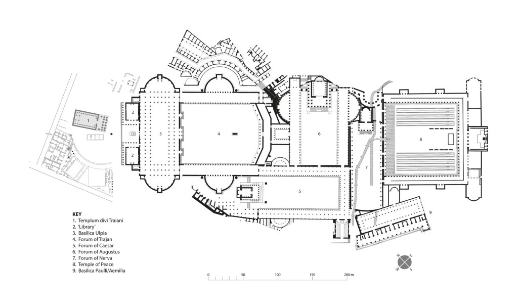 Per i Fori Imperiali voglio scendere giù alla quota delle piazze. Ma dovremo esaminarli anche dall’alto e, per questo, ho pensato di cominciare a darvi qualche planimetria da portare stampata il giorno del sopralluogo, per affrontare meglio l’argomento.