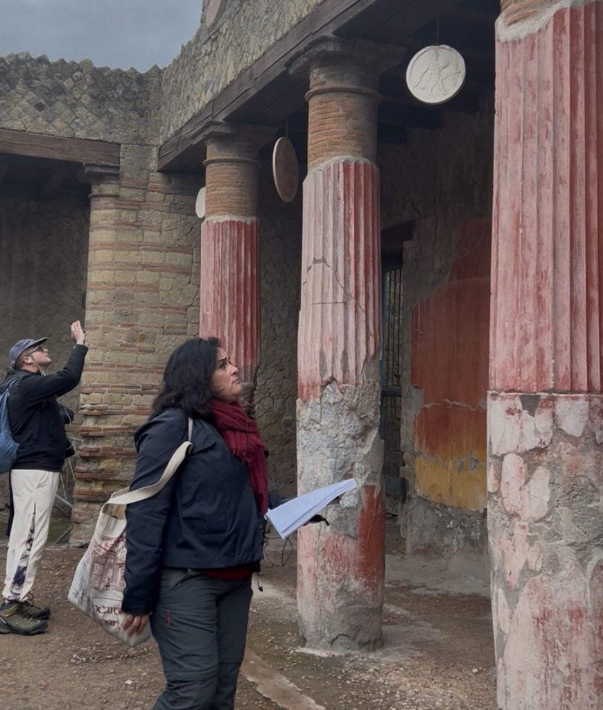 - Chiara Vicario, archeologa, impegnata attivamente nei servizi di accoglienza e vigilanza a Pompei è la nostra Genius loci. Chiara ha una formazione da epigrafista e con lei approfondiremo glia spetti legati alle epigrafi e alle iscrizioni di Pompei, ma non solo: con lei saremo “a casa”. Come ho visto Chiara muoversi tra i vicoli di Pompei, pochi altri. Siamo molto fortunati.