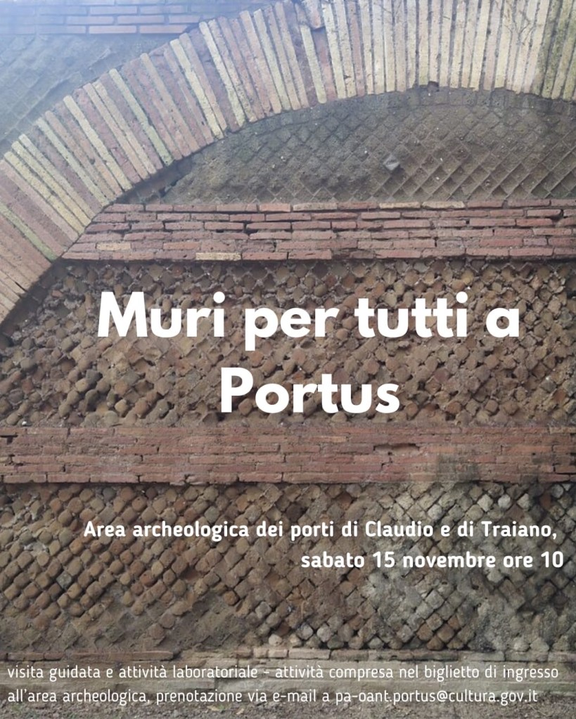 L’appuntamento è sabato 15 novembre alle 10 all’area archeologica dei porti di Claudio e Traiano: qui la mappa. L’attività è inclusa nel biglietto di ingresso all’area archeologica (6 euro); per partecipare inviate un’email a questo indirizzo :