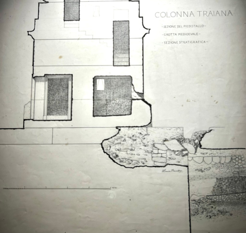 Impressionanti, per la perizia grafica e il dettaglio della rappresentazione stratigrafica del deposito archeologico, sono i disegni della Colonna Traiana, tra i primi che la giovane Barosso ha tracciato. Non solo solo semplici raffigurazioni della colonna, ma vere e proprie anatomie grafiche del manufatto, osservato in chiave documentaria. Fu sempre Boni a scavare per la prima volta attorno alla Colonna, dopo la realizzazione dell’esedra napoleonica, portando in luce un antico tracciato viario e una serie di tabernae, che l’allestimento francese aveva coperto. Era la scoperta di una Roma antecedente a quella imperiale che ossessionava le autorità e che guidava ogni opera pubblica. Boni badava alla stratificazione e così faceva la sua allieva, raffigurando quindi la sequenza degli strati individuati, strada compresa.