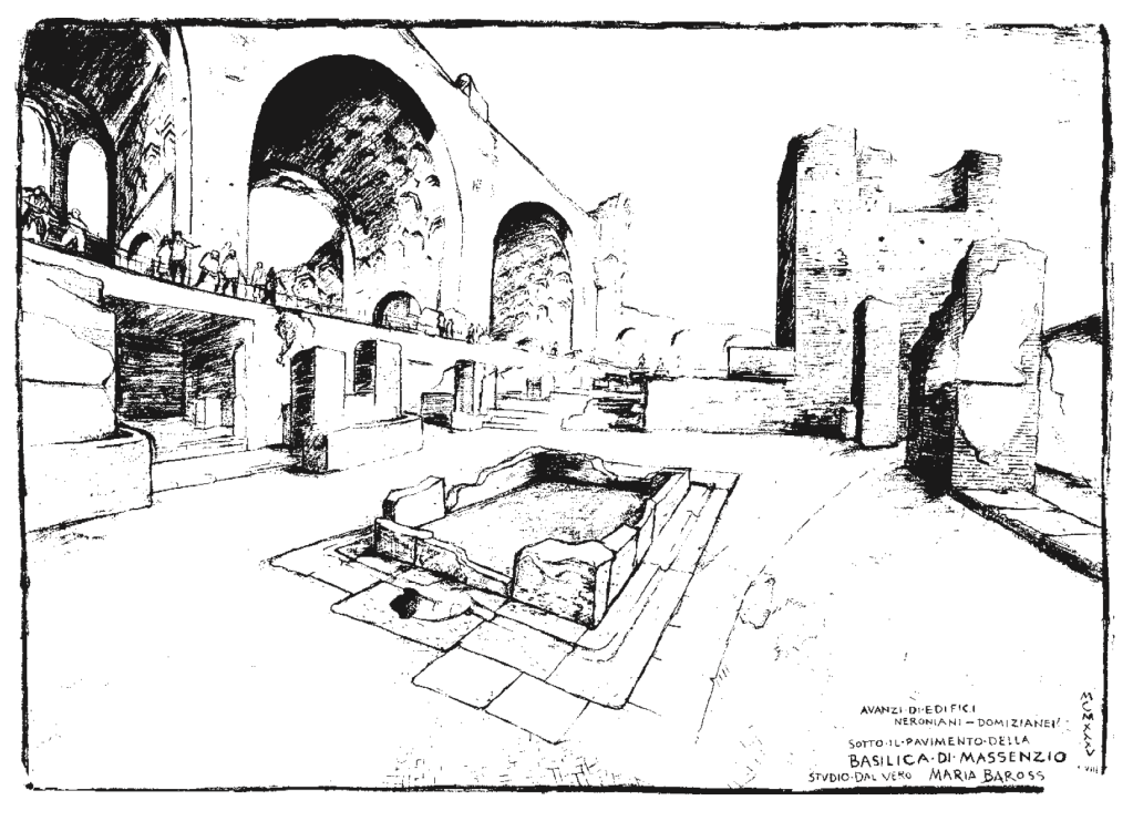 Maria Barosso condusse le indagini insieme a Giacomo Boni e fu lei a scoprire quei magazzini così importanti e a documentarli. Il momento, tuttavia, non era ideale e la scoperta, per quanto importante, passò in secondo piano rispetto ai piani del Duce. La Basilica di Massenzio, che sovrastava i precedenti Horrea domizianei, aveva la precedenza, in quanto doveva essere ripristinata nella sua funzione di aula pubblica per usi culturali. Inoltre, la tangenza con il cantiere di Via dei Fori Imperiali, che doveva essere inaugurata nel 1932, impose la copertura del cantiere, attraverso una soletta di cemento, di cui ancora vediamo le tracce nel percorso multimediale da poco inaugurato al Foro Romano. Ecco, quindi, che la “ragion di Stato” pose in secondo piano la scoperta di Maria Barosso.