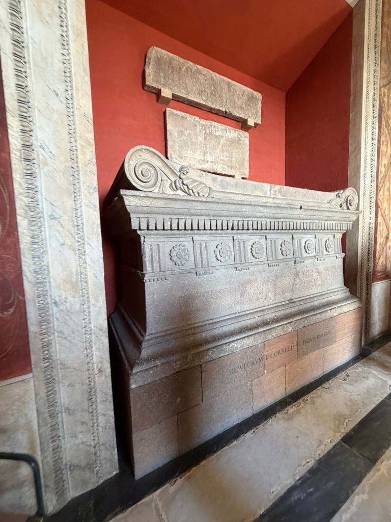 Erano stati gli Scipioni, a partire dal terzo secolo a.C., con la loro tomba familiare sulla via Appia, a manifestare apertamente la propria ellenizzazione. Il sarcofago di Scipione Barbato, console nel 298 a.C., rappresentava all’epoca tale intraprendente apertura, con il suo fregio a metope e triglifi, elementi decorativi di chiara matrice ellenica. Ma d’altronde Roma era stata fondata al tempo dell’ondata colonizzatrice greca e greci ne erano i suoi primi residenti, mescolati con altre etnie.