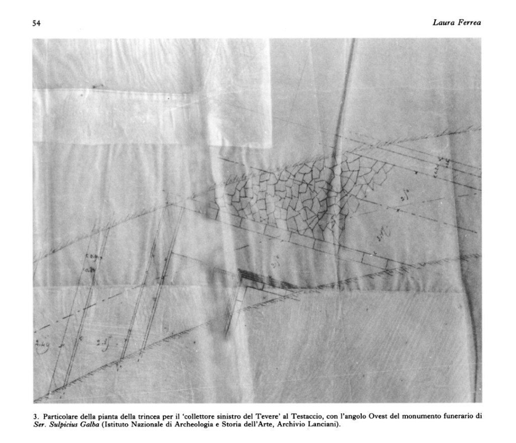Grazie allo studio di Laura Ferrea, edito nel 1998 sul Bullettino della Commissione Archeologica Comunale di Roma (dettagli in fondo al post), possiamo apprendere tutti i dettagli dell’operazione di smontaggio del sepolcro di Sulpicio Galba.