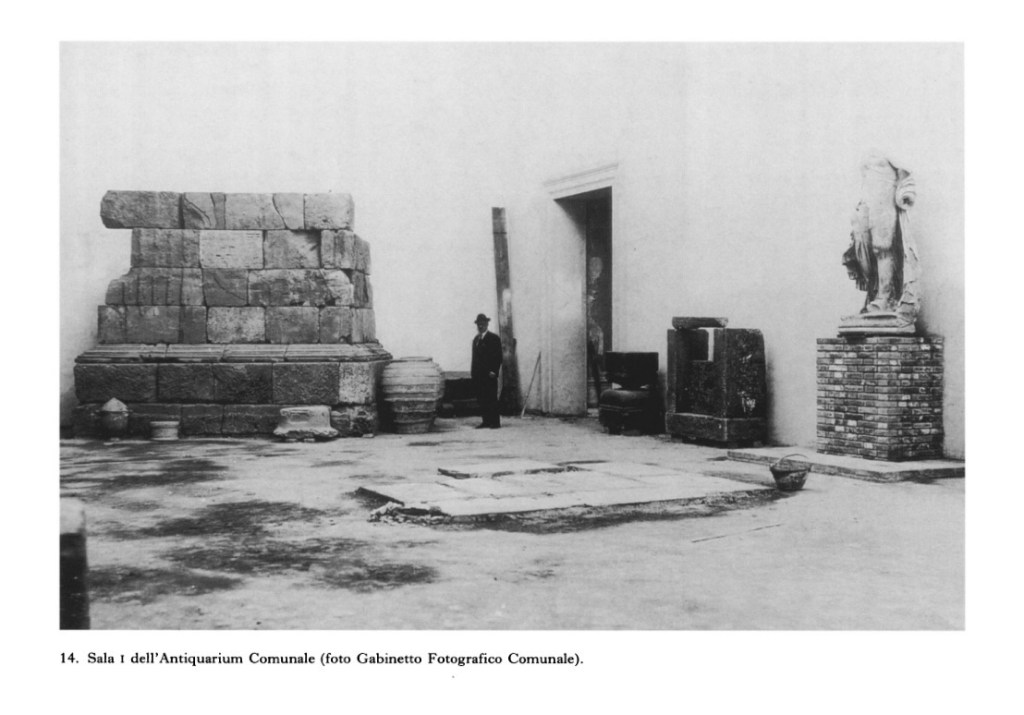 Intanto, smontato dal Testaccio, il sepolcro fu rimontato all’esterno del vecchio Antiquarium comunale inaugurato nel 1894. Poi, per i lavori di ampliamento dell’edificio condotti durante il Governatorato, fu sistemato in evidenza nella sala 1 del rinnovato Antiquarium.