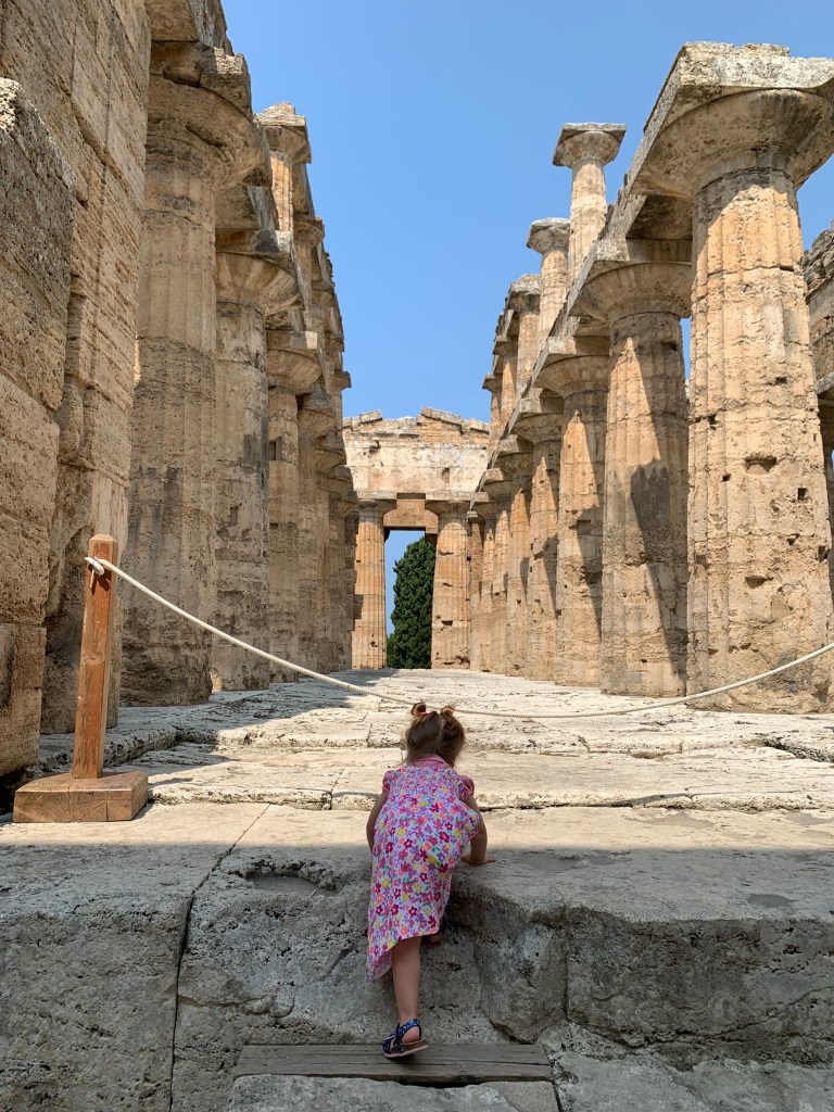 L’archeologia è linfa vitale e mia figlia lo sa (Paestum, Tempio di Nettuno, giugno 2023)